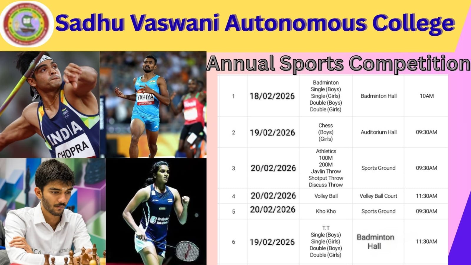 Annual Sports 2025-26:Annual Sports 2025-26 will be commencing from 18/02/2026 to 20/02/2026